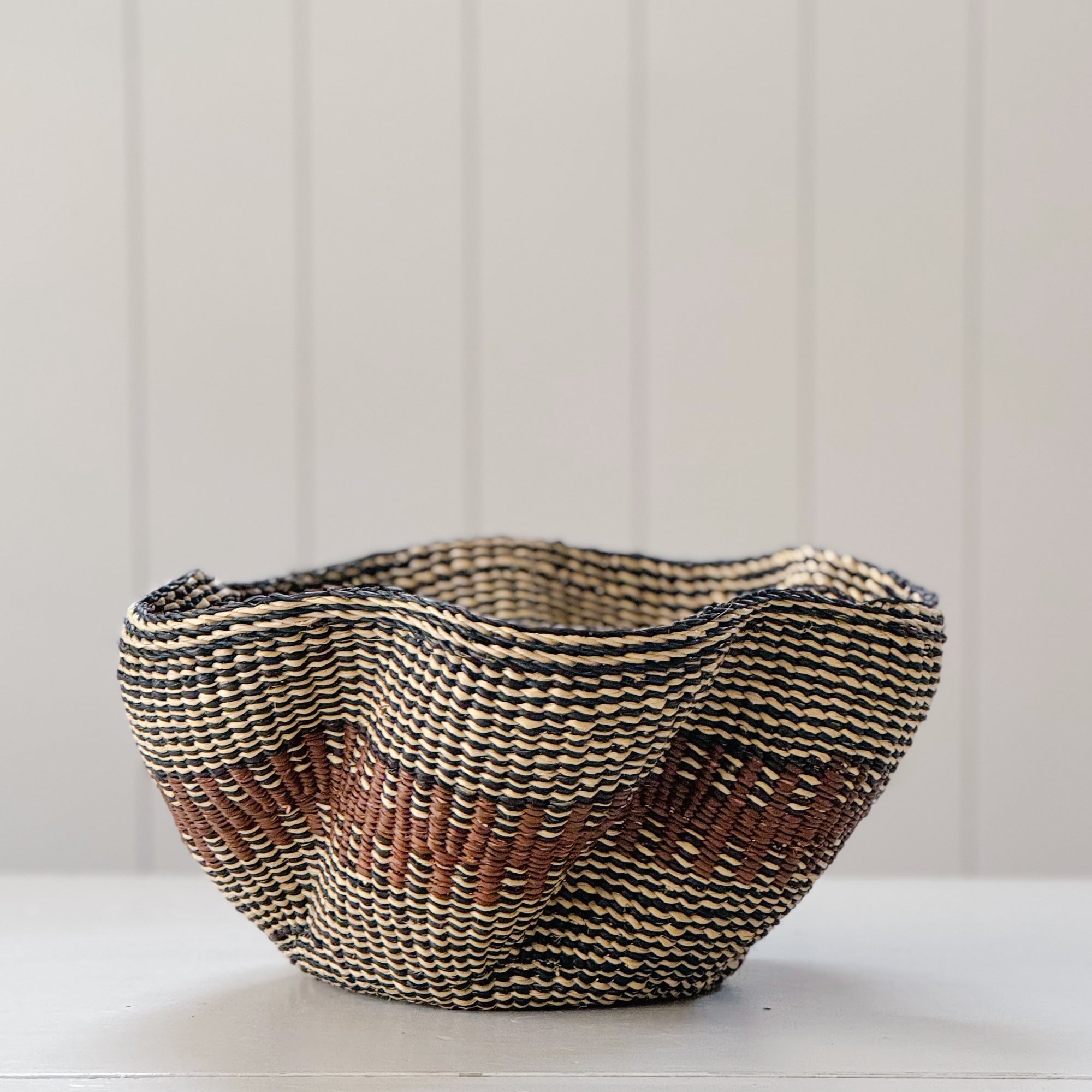 Small Pakurigo Wave Basket No. 9 | Brown + Ink Black