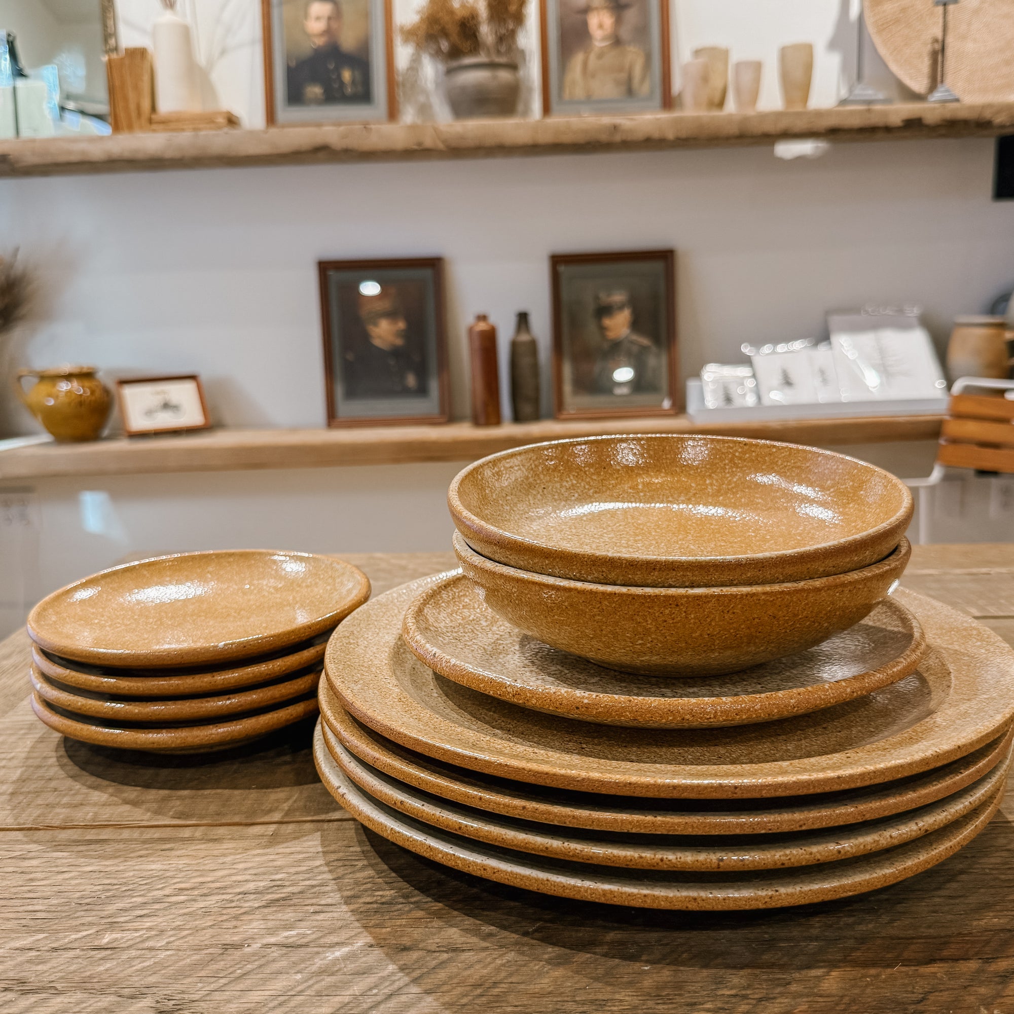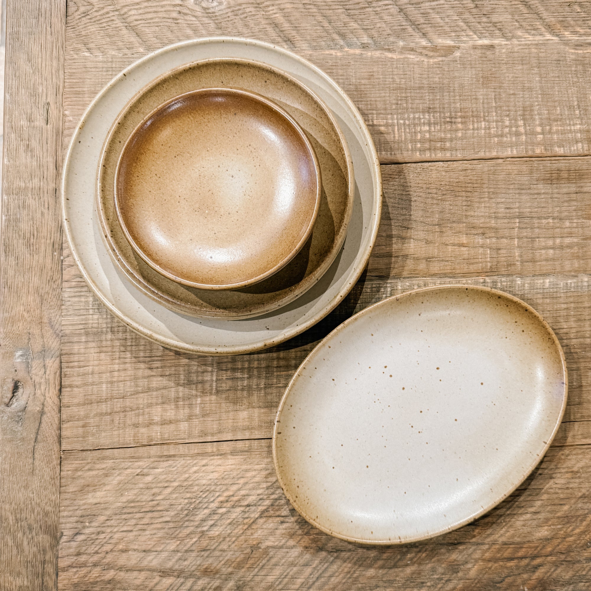 Tag Sale | Set of 11 Mixed Set of Klamath Wheat Glaze Dinnerware by Sarah Kersten Studio